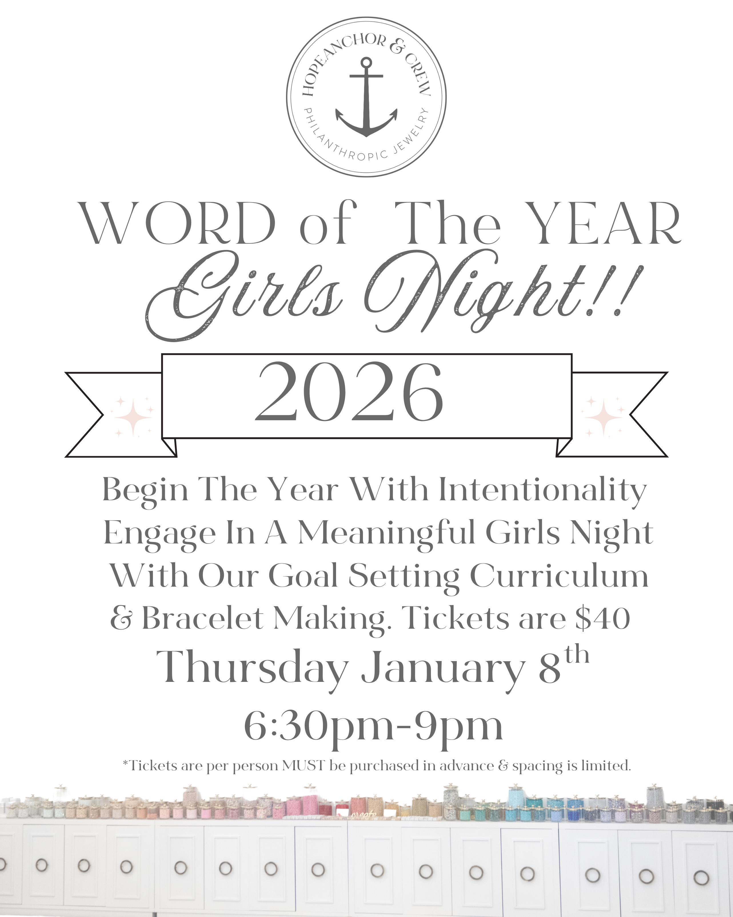 Our Word of The Year Workshop Girls Night has become a FAV for over 5 years!! Our ticketed event will encourage you to start 2026 with intentionality, vulnerability, & purpose within an inspiring & empowering community of women! Our annual Word of The Year Workshop has shown to be one of our most loved events of the year. This FUN & meaningful girls night will encourage you to reflect on 2025, identify areas of growth and set intentions & goals for 2026. You will be guided to select one word that will serve as your intention or WORD of the year.